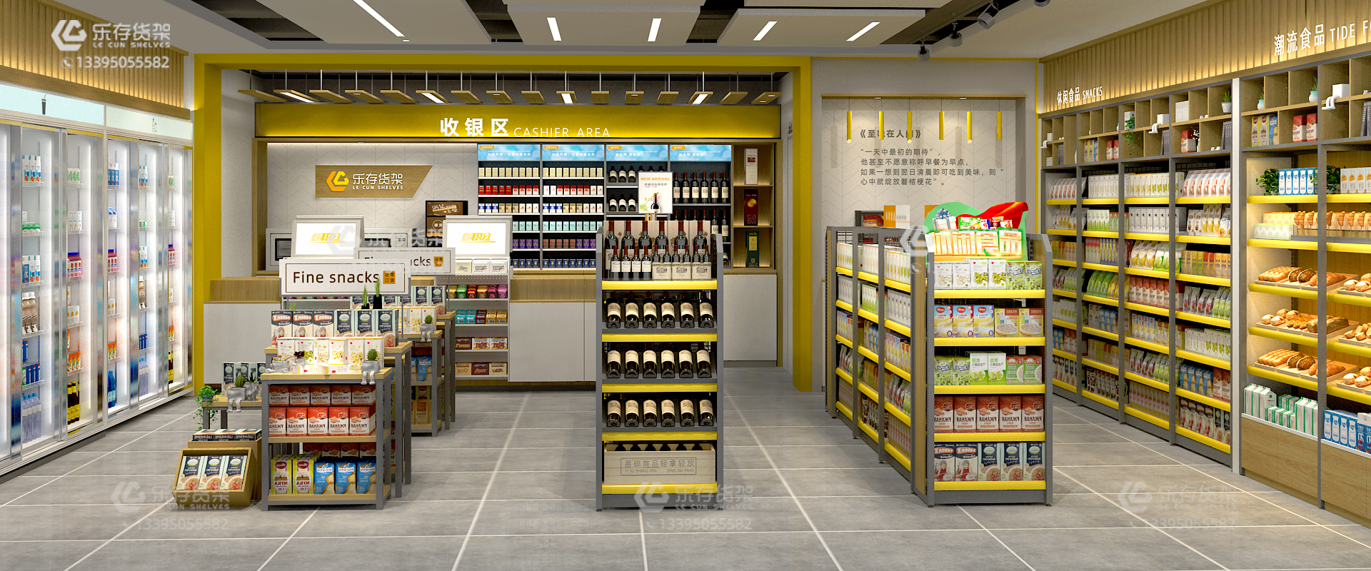 廈門便利店貨架,便利店陳列設(shè)計(jì),便利店貨架設(shè)計(jì),便利店貨架,便利店貨架裝修效果圖(樂存貨架)